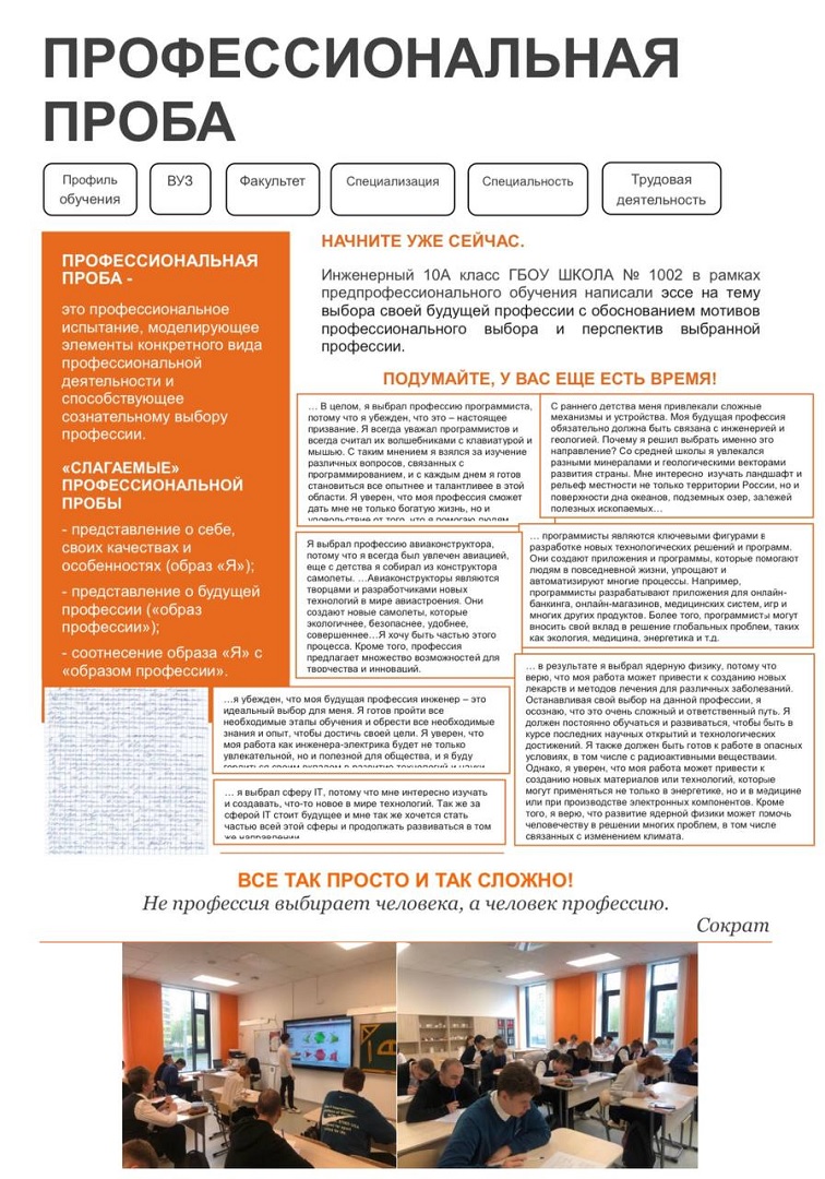 Ученики 10-го инженерного класса написали эссе на тему выбора будущей профессии