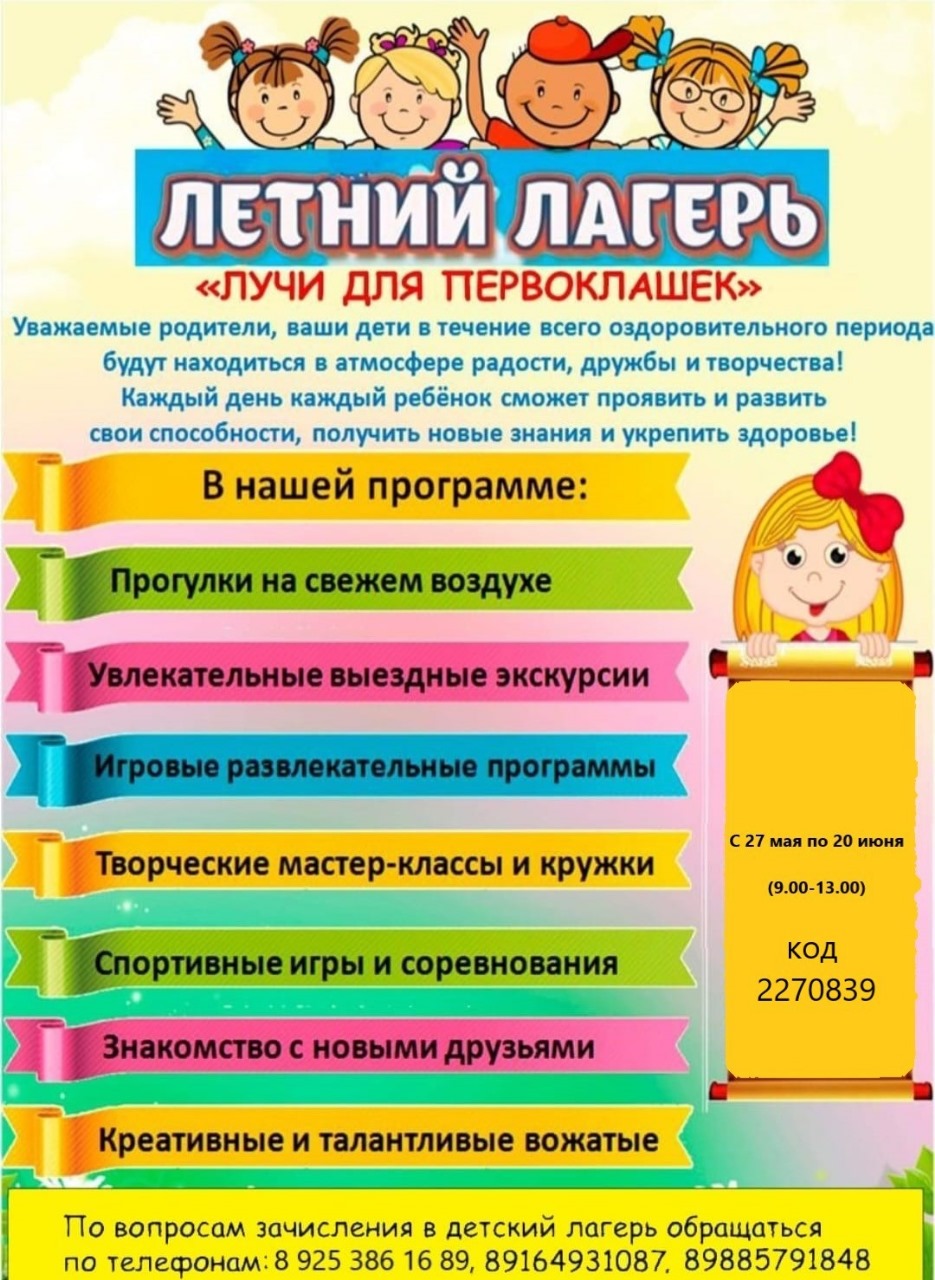 Подарите своему ребёнку незабываемое яркое лето на площадке "Лучи для первоклашек"