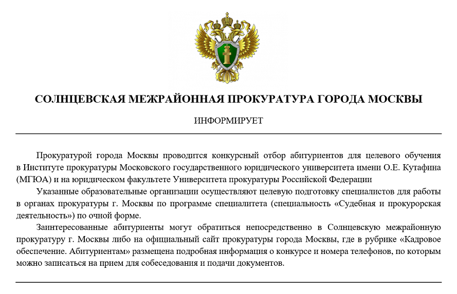 СОЛНЦЕВСКАЯ МЕЖРАЙОННАЯ ПРОКУРАТУРА ГОРОДА МОСКВЫ ИНФОРМИРУЕТ